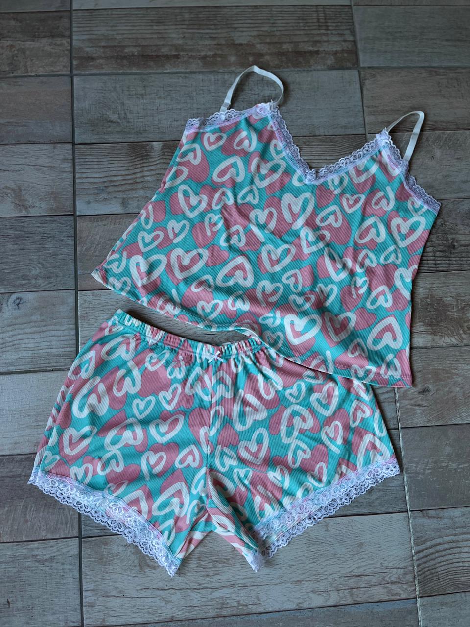 PIJAMA MORLEY TALLE 3 CELESTE CON ROSA, Y ROJO CON ROSA